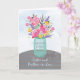 Souhaitez vos bénédictions de soeur et de beau-frère sur leur anniversaire. Ce joli vase à pot de maçon tient un bouquet mélangé des fleurs d'aquarelle-regard sur une table rayée. Carte assez religieuse pour dire l'anniversaire heureux.