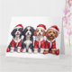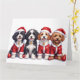 Adorable and goofy Bernedoodles, combining the Bernese Mountain Dog and Poodle, look cozy and festive in their Christmas Santa outfits! A popular design perfect for Doodle lovers.