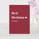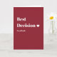 A modern, minimalist greeting card with a bold wine red background and clean typography.