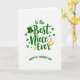 This card features the message “To the Best Niece Ever” centered in emerald green lettering on a bright white background, setting a sweet, close-knit tone 💚. Just below it, “HAPPY ST. PATRICK’S DAY” appears in a matching green, slightly arced line that neatly anchors the layout. A deep green leprechaun hat with a shiny gold buckle sits above the word “Best,” like a little wink that frames the compliment. Around the text, shamrocks in several shades of green drift across the space, giving the design a light, affectionate rhythm ☘️. Tiny gold starbursts are sprinkled between the clovers, adding small glints that feel like shared laughs tucked into the margins. Near the word “Ever,” a golden horseshoe curves in a bright yellow-gold tone, balancing the greens and drawing the eye to the final word. The overall arrangement keeps the focus on the niece message while the lucky symbols hover nearby like friendly company. The white background stays open and airy, with the green text in the middle, the hat above, shamrocks scattered around, and the horseshoe arcing close to the lower wording.