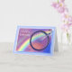 Carte avec mon oeuvre originale d'une roue de vélo et arc-en-ciel. Le texte dit "Joyeux anniversaire". Verse à l'intérieur.