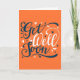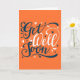 Carte de voeux moderne de typographie orange et bleu "Get Well Bientôt". Écrivez votre message personnalisé à l'intérieur.