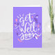 La typographie moderne violet et blanche "Get Well Bientôt" carte de voeux. Écrivez votre message personnalisé à l'intérieur.
