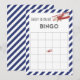 Baby shower carte de bingo avec design d'avion et bleu marine rayures arrière - plan.