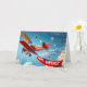 Biplan rouge vintage tirant une bannière d'anniversaire rouge et des bannières de fête Le texte intérieur peut être changé.