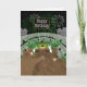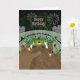 This birthday card has three bears cheering at a football stadium with green and white Pom-poms. There are fireworks exploding in the night sky with the text, ‘Happy Birthday’ on the jumbo-tron.