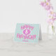 Cette joyeuse carte d'anniversaire pour les filles contient le message "Joyeux anniversaire", épelé dans des cookies découpés réalistes, disposés de façon fantaisiste et rose, sur le devant de la carte - le message intérieur et l'âge et le nom de l'enfant peuvent être personnalisés - deux cookies découpés en forme de coeur ornent l'intérieur de la carte - arrière - plan est un motif de petits pois roses sur un arrière - plan à la menthe - par katz_d_zynes