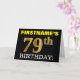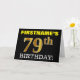 Ce design de carte de voeux d’anniversaire comporte un message comme "FIRSTNAME’S 79th BIRTHDAY!", avec le "79th" ayant une apparence de couleur fausse/imitation or. Le nom du destinataire sur le devant peut être personnalisé, et l’arrière - plan avant est de couleur noire. Il comporte également un message de voeux d'anniversaire personnalisable à l'intérieur. Une carte de voeux comme celle-ci pourrait peut-être être remise à quelqu'un pour célébrer son soixante-dix-neuvième anniversaire. [~Z0000183]