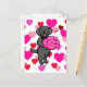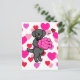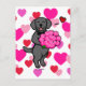 Brillant et souriant Black Labrador tient le bouquet Rose! Arrière - plan de coeur rose fille. Unique et drôle Labrador Retriever Art peint par Naomi Ochiai du Japon. Envoyez cette carte à vos propriétaires de Black Labradors. Sympa pour la Saint Valentin.