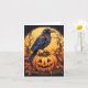 Cette éffrayante carte Halloween Happy présente un corbeau noir perché sur un citrouille. N'hésitez pas à modifier le texte pour rendre cette carte d'Halloween personnelle et unique.