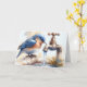Un bleuet perche à côté d'un robinet métallique, observant l'eau qui coule sous le robinet. Le texte intérieur est modifiable.