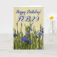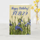 Aidez à célébrer l'anniversaire du bonjour de quelqu'un avec cette carte de voeux d'anniversaire fleurie qui présente une photo de jolies fleurs bleues d'Iris. Sélectionnez une carte de style mat ou brillant.