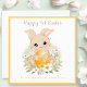 Le lapin de Pâques le plus mignon avec un oeuf de Pâques jaune Carte de Pâques pour la première Pâques du bébé. Personnalisez facilement cette carte de Pâques avec votre propre texte. - Kate Eden Art.