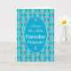Une carte de voeux chic Ramadhan, "Across the Miles", avec un motif islamique traditionnel en bleu, vert et violet, délimitée en blanc ; de la collection "islamique" posh & peintre.