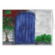 Une copie d'une image originale d'art d'aquarelle d'une porte bleue dans une maison grecque de village, peinte par la Géorgie Pistolis.