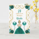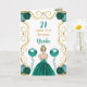 Cette invitation à la carte d'anniversaire comporte un cadre doré élégant, une belle princesse aux cheveux blonds et une robe bleue turquoise, des fleurs et un ballon.