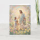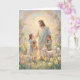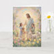 Celebrate the tender joy of Easter with this delightful card featuring a pastel painting of Jesus standing in a blooming field, smiling warmly as happy children gather around him with radiant faces. Gentle lambs and playful bunnies dot the lush grass, while vibrant flowers, blossoms, and a graceful arch frame the scene in soft hues of springtime renewal and love. The image captures the simple, heartfelt connection between the risen Savior and those He cherishes, inviting all to share in His light and peace. Perfect for expressing gratitude, hope, and the quiet beauty of resurrection life with loved ones.