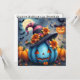 A cute blue pumpkin in a witches hate with orange flowers Halloween card that can be personalized with a name. Also the back is a cute coloring page!
