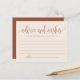 Demandez aux clients de donner leurs conseils et leurs souhaits avec cette carte de conseil personnalisable. Il dispose d'une calligraphie moderne en terre cuite et d'un motif confetti fantaisiste. Personnalisez en ajoutant vos propres détails. Vous pouvez également modifier l'image arrière en une photo ou toute autre image. Cette carte de conseil et de voeux boho est parfaite pour les mariages, baby showers, douches nuptiales, et bien plus encore.