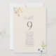 This elegant boho floral wedding seating chart table card features soft watercolor wildflowers in blush, blue, and yellow tones on a warm ivory background. The romantic botanical design creates a refined yet natural look, perfect for garden, spring, summer, and countryside weddings.