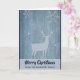 Carte de Noël avec un arrière - plan en faux bois bleu. Sur le dessus se trouve la silhouette d'un renne avec de gros bois et de jolis flocons de neige et des étoiles qui tombent autour de lui.