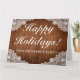 Joyeux jours fériés plié carte de voeux. Style rustique avec planches en bois arrière - plan et décor en dentelle blanche. D'autres articles sont disponibles dans ce style dans notre magasin. Vous pouvez modifier la conception plus loin, modifier les couleurs, les polices et ajouter du texte en cliquant sur le lien "customiser plus loin".