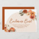 Complétez vos invitations de douche nuptiale avec notre Rustic Fall Citrouille Autumn Floral Fête des mariées Endoor Card. Dotée d'un design charmant avec des citrouilles rustiques, des fleurs d'automne et des teintes chaudes, cette carte fournit des détails essentiels de l'événement de manière élégante et saisonnière. Parfait pour ajouter une touche d'élégance d'automne à vos invitations de douche nuptiale.