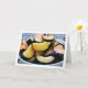 Carte de vœux Bol de prune tranchée. Vous pouvez facilement personnaliser ce produit gratuitement si vous souhaitez ajouter du texte ou changer la couleur de l'arrière-plan.