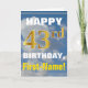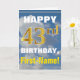 This simple birthday-théed greeting card design features a chaud birthday wish like "HAPPY 43rd BIRTHDAY, First-Name!" on the front, in bold text on a background depicting a blue sky with white and gray clouds. The birthday number has a faux/imitation gold-like coloring look. The name on the front can be customized. The inside features a birthday message that can be personalized. A greeting card like this could be a fun way to deliver birthday wishes to somebody who is celebrating their forty third birthday. [~Z0000284]