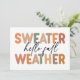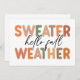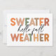 Cette œuvre d'art automnale vibrante capture parfaitement l'essence confortable de la saison avec sa typographie ludique et sa palette de couleurs chaudes. Le design présente la phrase audacieuse "Sweater Weather" en grandes lettres carrées qui alternent entre des nuances d'orange, de beige, de vert et de marron, évoquant les couleurs changeantes des feuilles d'automne. La phrase "hello fall" est nichée entre les deux, écrite dans un script cursif fluide qui ajoute une touche d'élégance et de chaleur au design.