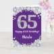 Bonne 65e Anniversaire Carte de Parties scintillant violet et argent avec nom personnalisé. Pour plus de personnalisation, cliquez sur le bouton "Customiser" et utilisez notre outil de conception pour modifier ce modèle.