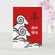 Joyeux Nouvel An chinois du mouton. Carte de voeux en papier avec l'illustration d'une paire de moutons, les yeux fermés et flottant paisiblement dans les nuages. Un symbole calligraphique zodiaque pour les moutons est également visible ainsi que Xin Nian Kuai Le. Copyright © Shoaff Ballanger Studios, 2023.