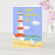 5 X 7 spectacle de cartes à puce "Joyeux anniversaire", with a happy coastal scene including lighthouse, seagull and beach.