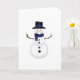 Répandez un peu de joie hivernale avec ce design fantaisiste de bonhomme de neige ! Représentant un bonhomme de neige joyeux portant un haut-de-forme noir avec un bandeau bleu foncé qui correspond à son écharpe. Parfait pour envoyer des vœux chaleureux, des salutations saisonnières ou simplement un sourire - intérieur vierge pour que vous puissiez écrire votre propre message sincère.