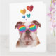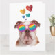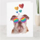Carte Bouledogue anglais avec coeurs Saint-Valentin