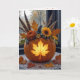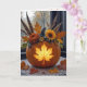 La feuille d'érable brille sur un citrouille d'automne avec des plumes de faisan et des fleurs d'automne. Le texte intérieur peut être modifié.