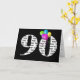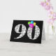 Numéro gras 90 pour anniversaire avec bouquet de ballon arc-en-ciel coloré sur noir