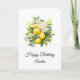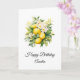 Carte d'anniversaire avec une belle illustration d'un bouquet de citrons entouré de fleurs blanches feuilles et sprigs.