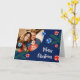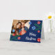 Elégante carte de Noël pliée sur mesure avec minimaliste branche sapin de Noël avec décoration rouge et bleue avec motif flocon de neige pour la saison des fêtes. Ces ornements apportent une touche ludique et festive à l'ensemble. L'illustration rayonne d'un esprit de fête joyeux et insouciant, saisissant la magie de la décoration d'un sapin de Noël, tandis que la couleur bleu foncé ajoute à l'accueil élégant et sophistiqué. Cette jolie branche d'arbre de Noël avec coussin de baubles est parfaite pour répandre des réjouissances de vacances et des vibrations chaleureuses, ajoutant une touche de fantaisie festive à votre décor de maison de Noël. Personnalisez cette carte de Noël avec votre photo, votre salutation et la signature de votre famille.