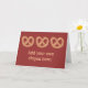 Ajoutez une salutation personnelle à cette carte bretzel-orientée. Comporte 3 noeuds d'un bretzel avec du sel, et un secteur entièrement personnalisable des textes pour votre slogan unique. Une manière d'amusement de célébrer avec la nourriture allemande ou un casse-croûte salé préféré.