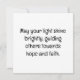La carte de voeux "Shine Your Light" est parfaite pour envoyer des messages d'encouragement et de foi. Avec une personne debout sur une falaise avec des faisceaux de lumière qui traversent les nuages, il symbolise l'espoir et l'orientation que la foi fournit en temps incertain.