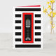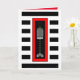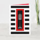 Un hanukkiah à plis de buffle rayé est surmonté de flammes cardiaques colorées dans un cadre rouge audacieux et superposé sur des rayures noires et blanches audacieuses. Carte intérieure avec "Hanoukka Blessings !" et est bordée et coordonnée pour votre plaisir d'écriture. ~ karyn