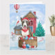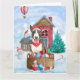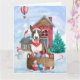 Carte Bull Terrier dans une maison pour chien enneigée à