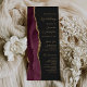 Le bord gauche de cet élégant programme de mariage moderne est doté d'une bordure en aquarelle rouge bordeaux et bordée d'une parties scintillant en faux or. Le texte personnalisable combine un script de calligraphie couleur or et des polices sans serif sur un arrière - plan sombre.