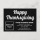 BON THANKSGIVING ! Un jour férié pour célébrer et remercier pour les bénédictions que nous avons reçues. C'est aussi l'un des jours fériés pour annoncer votre entreprise. Petite carte de voeux plat que vous pouvez customiser pour mettre votre marque d'affaires et avec l'accueil de Thanksgiving. Customisez-le et utilisez-le pour accueillir vos clients ou clients ce Thanksgiving et comme matériel marketing pour annoncer votre entreprise ou promouvoir votre marque. Vous pouvez également l'utiliser comme accessoire du matériel d'emballage de votre produit. Carte de voeux personnalisable que vous pouvez utiliser pour sensibiliser la marque. Les couleurs design sont des textes blancs sur arrière - plan noir. Pour customiser cette carte de voeux, téléchargez votre logo d'entreprise, tapez votre nom d'entreprise, votre adresse, votre numéro de téléphone, votre adresse électronique et votre site Web ou votre page de médias sociaux d'affaires. Veuillez vérifier l'apparence après avoir téléchargé le logo et tapé des textes. Si l'apparence vous plaît, vous pouvez passer votre commande maintenant. Si vous avez besoin de redimensionner et déplacer le logo et les textes pour s'adapter sur cette carte de voeux ou sur d'autres tailles que vous choisirez, s'il vous plaît changer dans l'outil de conception. Vous pouvez également modifier la couleur arrière - plan, la couleur de police et le style de police dans l'outil de conception. BON THANKSGIVING ! Je vous souhaite plus de ventes ce jour férié.