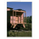 Profitez de cette vue imprenable d'une voiture de train caboose rose sur sa propre petite piste.