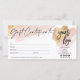 utilisez ce certificat de carte cadeau professionnel, rose et or moderne, et ajoutez votre logo pour obtenir un look plus professionnel