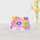 Cette carte d'anniversaire amusante et colorée pour les filles comporte le message "Joyeux anniversaire", épelé dans des cookies découpés roses et dépoli réalistes disposés sur le devant de la carte entourés de ballons multicolores et de drapeaux de bunting - message intérieur et l'âge et le nom de l'enfant peuvent être personnalisés - deux cookies découpés en ballon à l'intérieur de la carte - arrière - plan est un motif de petits pois blancs rose pâle - par katz_d_zynes