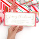 Ce voucher cadeau de Noël est décoré d'un motif rayé. Le titre "Joyeux Noël" est une image qui ne peut pas être modifiée. Tous les autres textes sont entièrement modifiables. Pour une personnalisation plus avancée de cette conception, il suffit de cliquer sur le bouton "Customiser" ci-dessus.