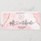 Carte cadeau Logo moderne Blush Pink Agate Certifi